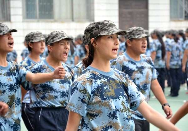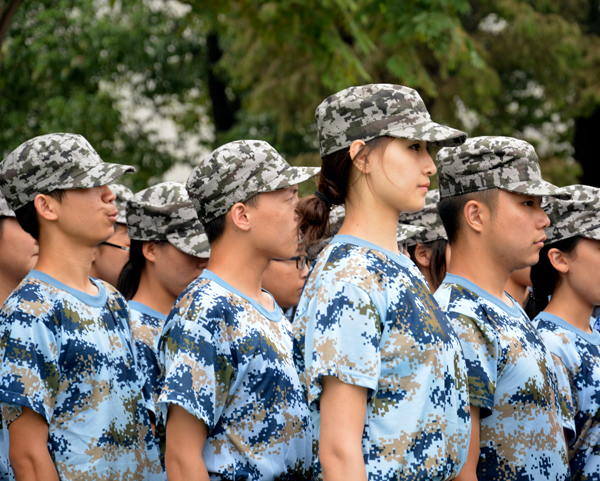 本网讯(记者 吴秀丽)9月18日,军训的第12天,2015级新生嘹亮的口号,激昂的歌声,整齐划一的动作,使校园充满生机和活力。在军训的队伍中,有一个排头标兵吸引了笔者的目光,她身着海蓝色的迷彩服,身姿挺拔,标准的军姿散发着军人的风采。这个女孩叫吴静,她是会计专业大一新生。笔者用镜头记录下了她的军训生活。