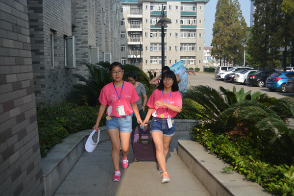 志愿者送新生入住寝室