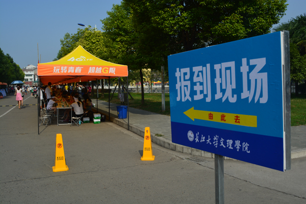 醒目的报到指示牌在校园里随处可见