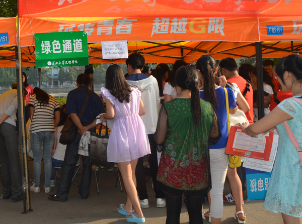 在报到现场,专门开设了“绿色通道”确保家庭经济困难的新生能够顺利入学。