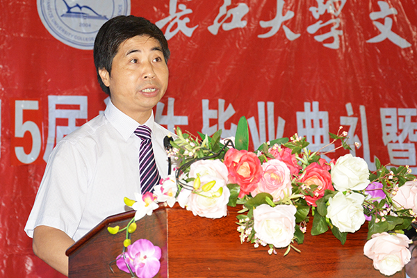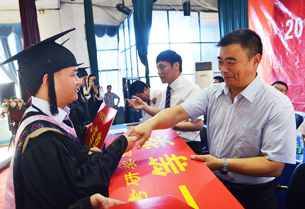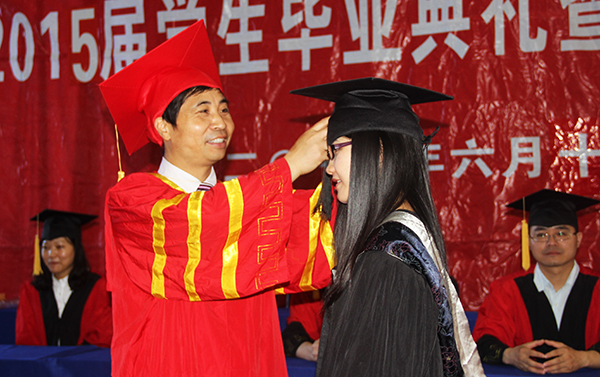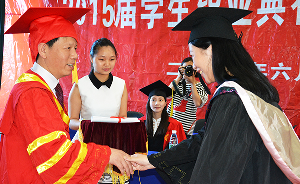 王金琼以《努力超越自己》为题在毕业典礼上发表讲话,教师代表马晓晶以《用智慧开启人生新征程》为题,向毕业生们送上祝福、勉励和希望,毕业生代表秦思军以《不想说再见》为题,代表2015届毕业生表达对母校、师长、父母与亲友同窗的感谢。