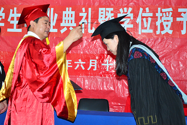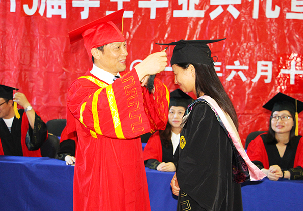 毕业典礼结束后,院领导王金琼、高迎斌、郭睦庚,王学峰、汪邦柱、曹骥,分别在城中校区和西校区为人文与传媒系、外国语系、工商管理系,机电与信息工程系、经济与贸易系、建筑与设计系毕业生颁发学位证书并援正流苏。