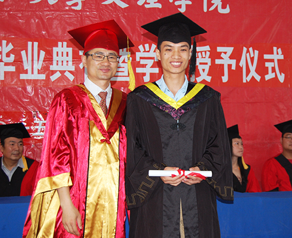 在欢乐的乐曲声中,毕业生们依次走上主席台。领导为优秀毕业生代表、考研学子颁发荣誉证书。