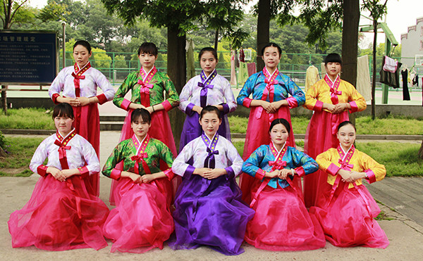 在青春歌舞《小苹果》的劲爆旋律中,活动开始。主持人热情洋溢,向观众生动介绍韩国的饮食、服饰、节日、风俗等传统文化后,鲜艳美丽的韩服秀精彩上演。10名同学身着贯穿着东方式文化精神的韩服,以款款风姿表达着服饰中蕴含的文化内涵。