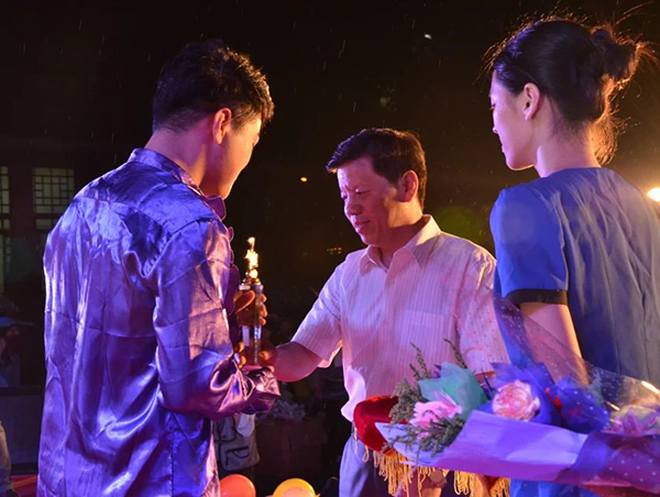 王金琼(中)为获奖选手颁奖
