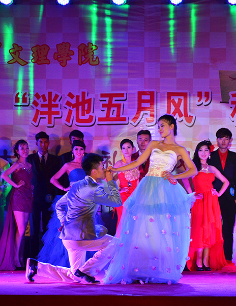 现场师生欢腾,荧光棒、欢呼声与掌声此起彼伏。日常礼仪表演环节,选手们伴随主持人对中华礼仪的解说,身着红色、蓝色职业装依次登台,在优雅的旋律中向观众展示礼仪整装、迎宾礼、让座礼等礼仪;个人才艺展示环节,4号选手钟昕以灵动舞步秀出“一个美丽的地方”的奇谲秀美,2号男选手别子豪深情婉转的歌喉演唱《我怀念的》,9号选手付腾飞、8号选手吉训敏、9号选手闫佳佳、6号选手屈梦,热烈奔放的舞姿展示了《西班牙舞》的异域风情;2号女选手万嫣红身着红色绣凤旗袍,婉约绽放东方之美;3号选手羌凯一身干净清朗的西服,英气逼人;10号男选手刘振阳携手身着白纱公主裙的10号女选手胡锦阳,阳光出场,打造出王子公主般的“梦幻婚礼”……观众一浪又一浪的掌声与欢呼声,将大赛气氛逐步推向高潮。