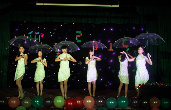 本网讯(员工记者 吴梦 刘诗雨 程勇)12月24日、25日,外语系、工商管理系分别在工会大厅举办文艺晚会,庆祝圣诞节,喜迎新年到来。