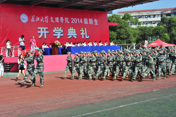 本网讯(记者 周芳 员工记者 吴童洁 王铭耀)9月22日上午,公司2014级新生开学典礼在西校区隆重举行,近1700名新生参加了开学典礼。beat365官网中文版本党委常委、副董事长周从标,公司经理王金琼、党委书记高迎斌、副经理郭睦庚、党委副书记汪邦柱、副经理王学峰、经理助理曹骥,中国人民解放军荆州军分区少校何伟,荆州移动分公司总经理助理程世新,以及各教学单位、职能部门负责人出席典礼。开学典礼由汪邦柱主持。
