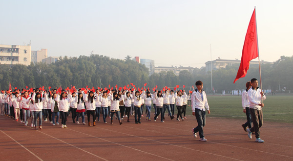 本网讯(员工记者 罗慧 见习记者 胡琴)“扬体育精神,展青春风采,练健康体魄,享快乐生活。”11月14日上午,在公司第十届田径运动会开幕式上,主席台前,院国旗队、鲜花队、红旗队、裁判员队和七个系部代表队共11个方阵精彩亮相,引来了观众们的阵阵掌声和欢呼。