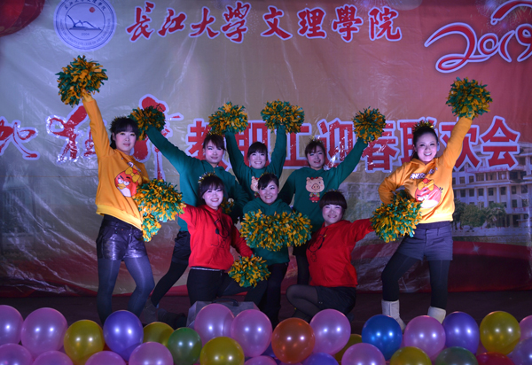 外语学部带来的劲歌与热舞也十分给力,一曲《三国》,在刘哲、刘鋆峰老师的默契配合下引发观众的热烈欢呼呐喊;八名女老师身着色彩缤纷的运动服表演健美操,激情四射、活力十足。