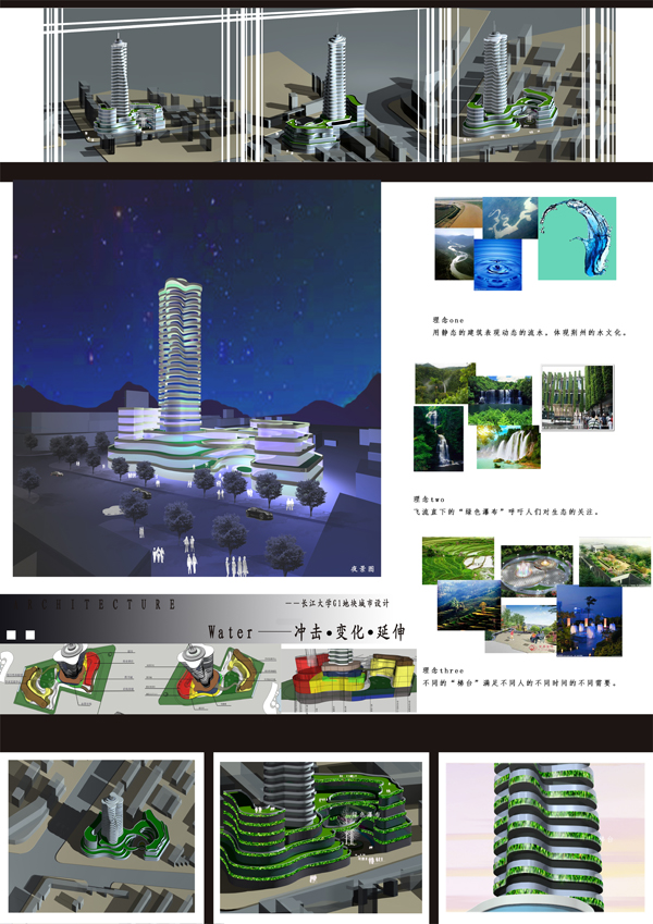 理工学部认真筛选,最终确定了赵燕玲、向奎、番禺钢、陈芸团队和解陈诚、曾晶晶团队作品参加比赛。前者的《Water——冲击•变化•延伸》方案获二等奖(一等奖空缺),同时获2000元奖励;后者的《十年树木•百年树人》方案获优秀奖。