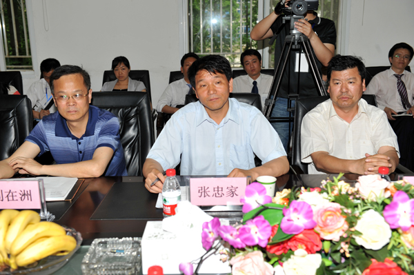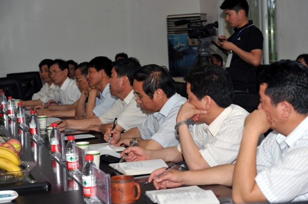 beat365官网中文版本党委书记张忠家、董事长张昌民(右一)、副董事长刘在洲(左一)听取专家意见