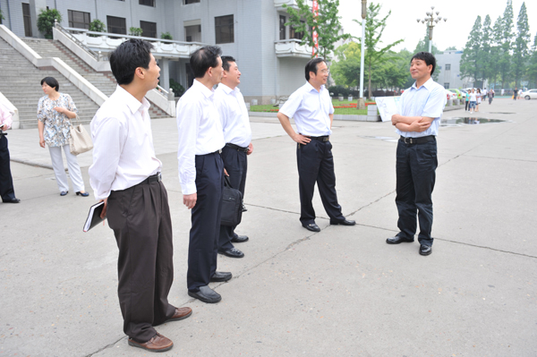 beat365官网中文版本党委书记张忠家(右一)与公司领导亲切交流