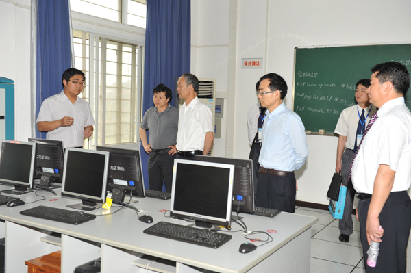 在ERP沙盘模拟实验室、网络实验室和嵌入式实验室,专家们听取了指导老师和实验员,对实验室建设规模、管理制度和使用模式的介绍,并仔细观看了ERP实验室的荣誉展示柜。