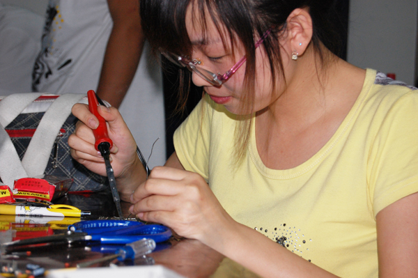 比赛现场还有不少女生组认真地进行焊接,颇有巾帼不让须眉的风范。