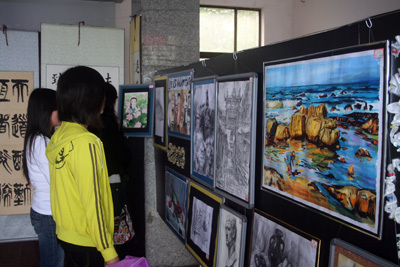 据悉,本次参展获奖作品分为书法和绘画两大类,其中绘画类作品涵盖国画、油画、立体水彩、铅笔素描、漫画等多种题材,其中来自中文5081班雷志书写的《望海潮》获得一等奖,其字清新隽永,灵巧飞动;广电5061班陈慰用行书书写的软笔作品,笔法圆润,形神兼俱,最终荣获二等奖。
