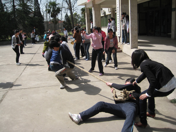据胡老师介绍,此次拔河比赛是基础学部中文系2010年系列活动之一,接下来还将举行演讲比赛、“三笔字”书法比赛、羽毛球比赛和桃花村踏青活动等,让同学们在活动中增进友谊,加强沟通。