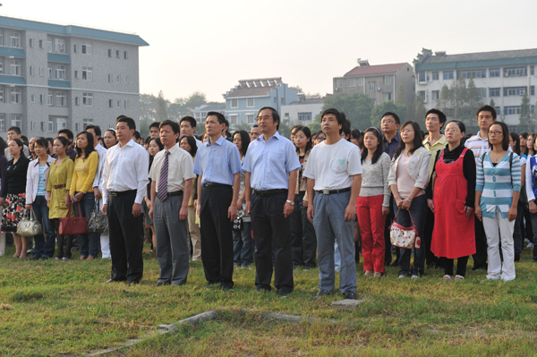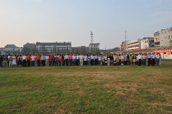 本网讯(员工记者 周相飞 徐敏)国庆大典,普天同庆。为向祖国六十周年献上最诚挚的祝福,10月1日上午7点半,公司领导沈光明、袁先海、王金琼、郭睦庚、汪邦柱以及500多名师生参加了庄重的升旗仪式。