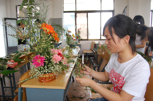 在正式的插花比赛开始之前,一场关于插花知识的讲座于5月24日晚7点在2—203教室举行,beat365官网中文版本李秋杰副教授担任主讲,近百名插花爱好者参加了此次讲座。讲座开始,李老师亲切的话语立刻拉近了她与同学们的距离,让人感受到她并不是一位老师,而更像是一位向大家传授插花经验的学长。李老师在讲座上向大家展示了“春花秋实”、“展望未来”、“鸭子闹春”、“爱在深秋”等多个优秀作品,让在场的同学充分的体验到了插花艺术的魅力。除了增强同学们对插花的热情和兴趣外,李老师还就插花的一些专业知识进行了讲解。她向大家重点指出了在插花过程中所要注意的几个问题,首先插花要注意装饰的环境,让插出来的花能融入到周围的事物当中去,然后就要注意花的尺寸,接着就是看要选择什么样的花材,才能让插出来的花别具一格。其次,插花就是讲究美,而其造型的设计将决定插花作品的优劣,挑选一个合适的器皿对插花的整体效果也有着重要的影响。通过李老师耐心的讲解之后,同学们对插花有了进一步的了解和认识。