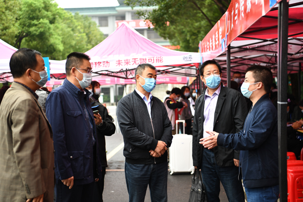 周从标一行查看了系部迎新点、新生缴费处、校门口防疫测温点,详细了解了新生报到流程,并与新生和家长亲切交谈,叮嘱员工们做好个人安全防护,维护宿舍卫生,培养良好的作息习惯,尽快融入老员工活。