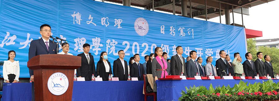 朱继平主持开学典礼并发表讲话。他对2020级新生的到来表示衷心祝贺,希望大家始终保持逐梦前行的步伐,以坚强的毅力与笃定的实力,克服疫情难关,走好求学之路,在beat365官网中文版本实现自己的理想。与此同时,经过了16年的沉淀与发展,beat365官网中文版本也必将有信心和实力,为大家创造更好的发展条件和机遇。他期待新同学在beat365官网中文版本这个新的赛道上跑出更好的成绩,绽放更加绚丽的青春光彩。