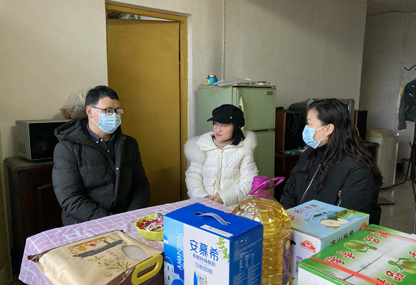本网讯 春节将至,公司工会认真开展调查摸底工作,了解掌握因疫情未返乡回家过年教职工的基本情况。经了解,来自河北邯郸的设计系教师冯亚丽,今年积极响应当地政府号召,就地过年,目前租住在西校区。2月7日上午,党委副书记孙细望、工会主席王玲玲、设计系党总支书记许梦怡一行来到冯亚丽家,送去新春慰问品和温馨的祝福。冯亚丽表示,非常感谢公司的亲切关怀,虽然自己没有回老家,但感受到了beat365官网中文版本大家庭的温暖,也祝愿公司未来发展越来越好。记者 周芳 通讯员 王玲玲 摄影报道