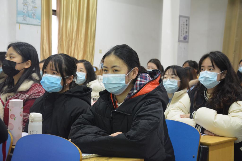 王文凯(后排右一)、康建虎听取开学第一课