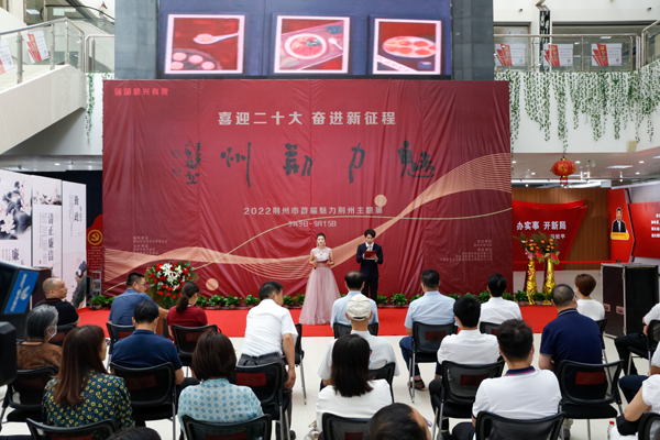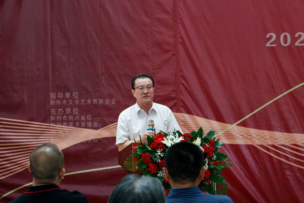 公司经理王文凯在致辞中表示,本次展览旨在通过高校课程教育成果,描绘荆州人文历史风貌,用青年一代的热忱展现时代风采,以优异成绩迎接党的二十大胜利召开。王文凯对荆州市美术家协会、荆州画院的专家对公司员工的大力指导表示感谢,也希望本次活动能为文化创作者们提供一个良好的交流平台,为荆州市文化建设助力,创作出更多让人民满意,让时代铭记的精品力作。