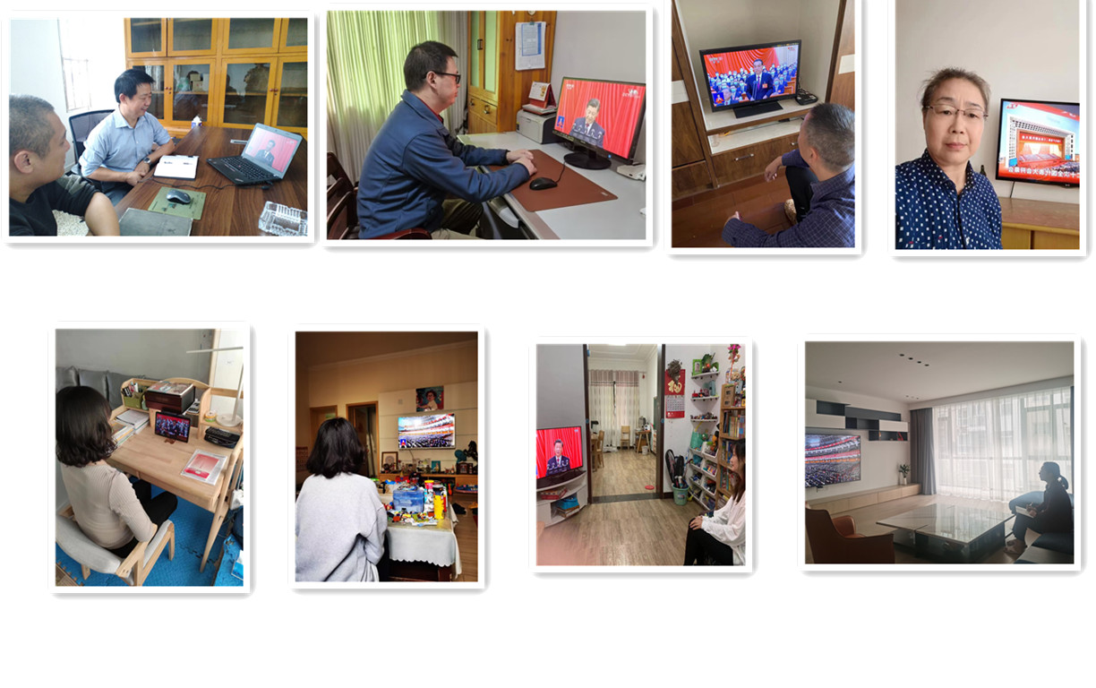 本网讯 10月16日,公司党委理论学习中心组全体成员采用线上线下相结合的方式开展政治学习。上午十时,在校园一线参加疫情防控值守的中心组成员王文凯、朱继平、尹家经、于永伟等,早早守候在大屏幕前收看党的二十大开幕会盛况,大家戴好口罩、隔空就坐,并不时做着笔记。根据疫情防控要求,其他居家办公的中心组成员也分别通过各种方式收听收看开幕会,认真聆听习近平总书记代表第十九届中央委员会向大会作的报告。