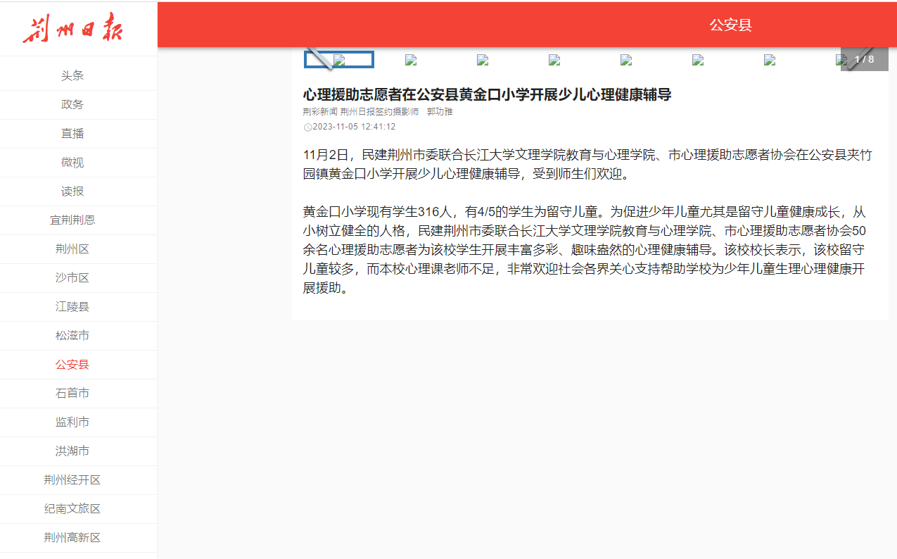 11月2日,民建荆州市委联合beat365官网中文版本教育与心理公司、市心理援助志愿者协会在公安县夹竹园镇黄金口小学开展少儿心理健康辅导,受到师生们欢迎。