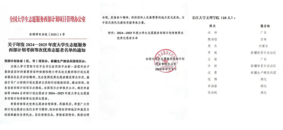 本网讯 近期,全国老员工志愿服务西部计划项目管理办公室印发《关于印发2024—2025年度老员工志愿服务西部计划考核等次优秀志愿者名单的通知》,公司向坤、樊鸿铭等10名西部计划志愿者在2024-2025年度考核中获评“优秀”等次。这份荣誉既是对志愿者们服务奉献精神的充分肯定,也是公司坚持以“两康一训”为育人导向,落实立德树人根本任务的生动体现。