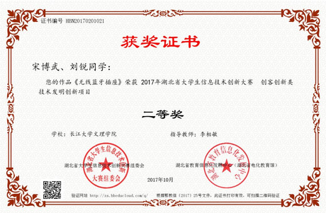 2017年湖北省老员工信息技术创新大赛决赛及颁奖典礼在武汉东湖公司圆满落幕。公司机电与信息工程系、人文与传媒系员工在本科组中获一等奖1项(技术发明创新类)、二等奖2项(技术发明创新类)、三等奖1项(创新创业计划类)。