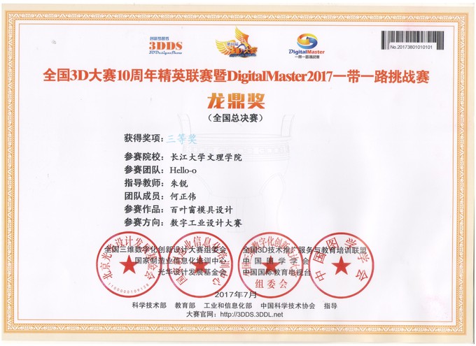 本次大赛由国家制造业信息化培训中心、光化设计发展基金会等单位主办,国家制造业信息化培训中心3D办、克拉玛依市科协等单位承办。共有来自全国203所高校的230支代表队参加。另外,在全国三维数字化设计大赛湖北赛区的比赛中,机电与信息工程系组织2支队伍参赛,获数字工业设计大赛湖北省赛特等奖1项,二等奖一项。