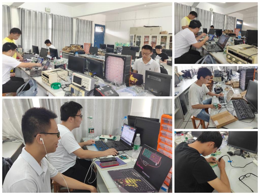 为了更好备赛,我系利用实验室现有资源,集合电子信息类专业员工,从4月份开始进行集中培训,积极备战此次竞赛。指导老师们利用周末休息及暑假时间,通过讲座、实践指导、座谈等多种形式,带领参赛队员紧张有序的学习,攻克了一个又一个电赛课题难关,不断激发员工的潜力。在短短的四天三夜比赛时间内紧张地进行每个环节的制作。一直以来,公司领导、教务处和我系领导对老员工电子设计竞赛高度重视和大力支持,多次看望参赛员工和指导老师,极大提升了员工的比赛信心。