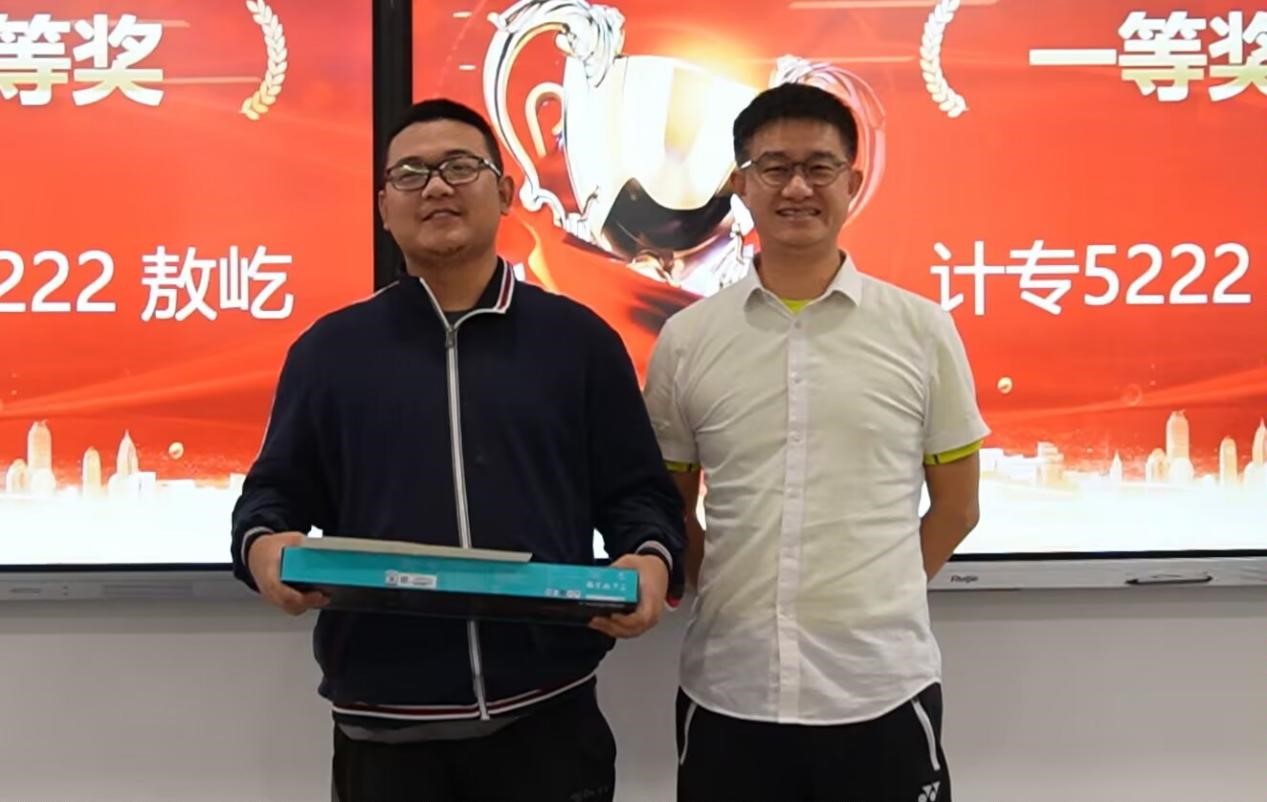 根据竞赛实施办法有关精神,经笔试、机试、教师指导组评审、会议研究等程序,最终成绩揭晓:敖屹同学荣获一等奖;祝成贽、刘成富同学荣获二等奖;罗玙、李向阳和胡启明荣获三等奖。随后院领导为获奖员工颁奖。