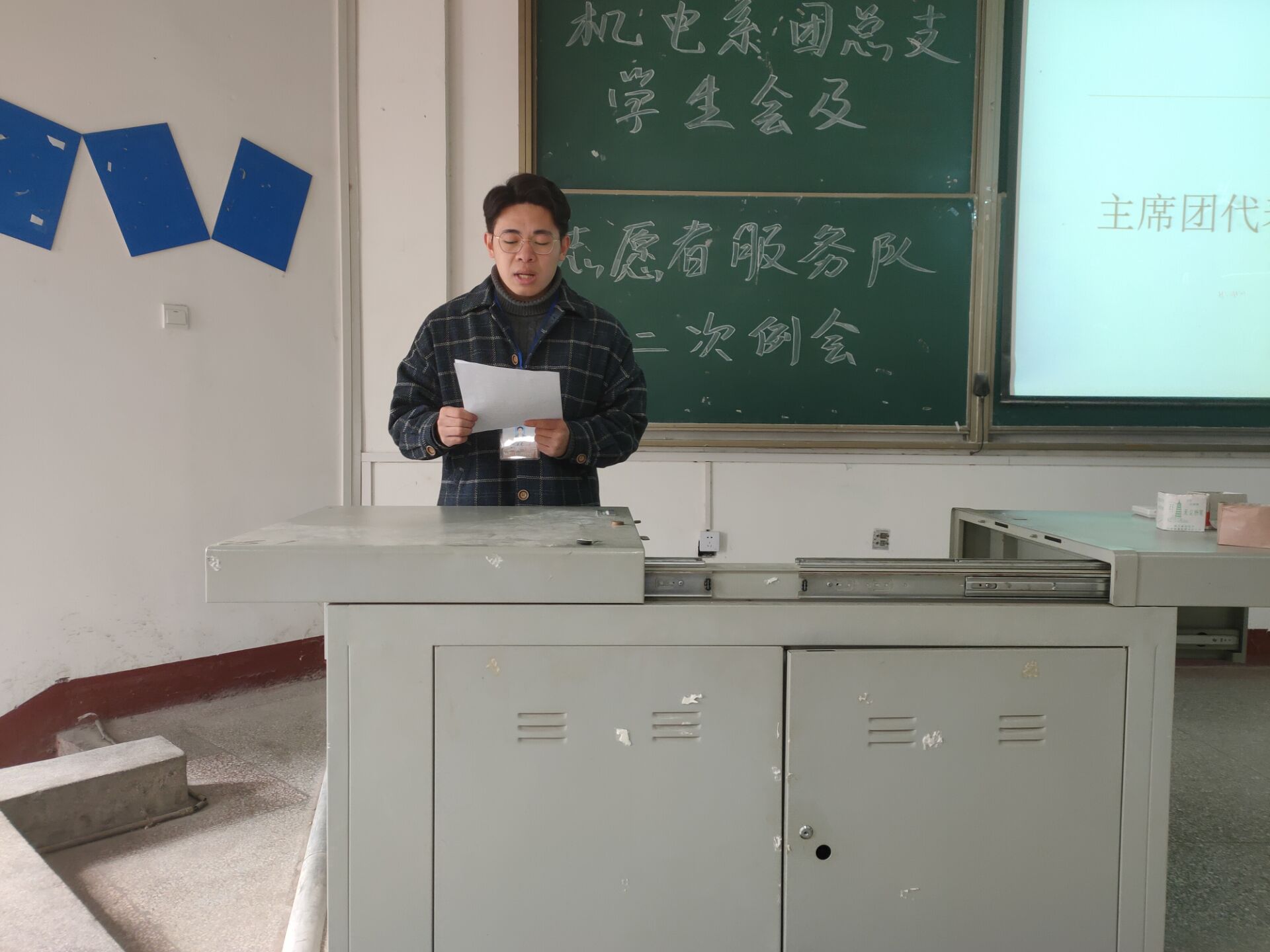 会议开始,主持人黄晓菲致开幕词,各部门代表依次上台发言,通过PPT的展示对近期工作内容作总结,指出不足之处,并对今后的工作安排提出建议。随后,主席团代表胡波上台发言,他围绕工作完成情况、各部门之间沟通交流情况、成员做事效率三个方面做阐述与总结,并针对出现的问题给出相应的解决方案。