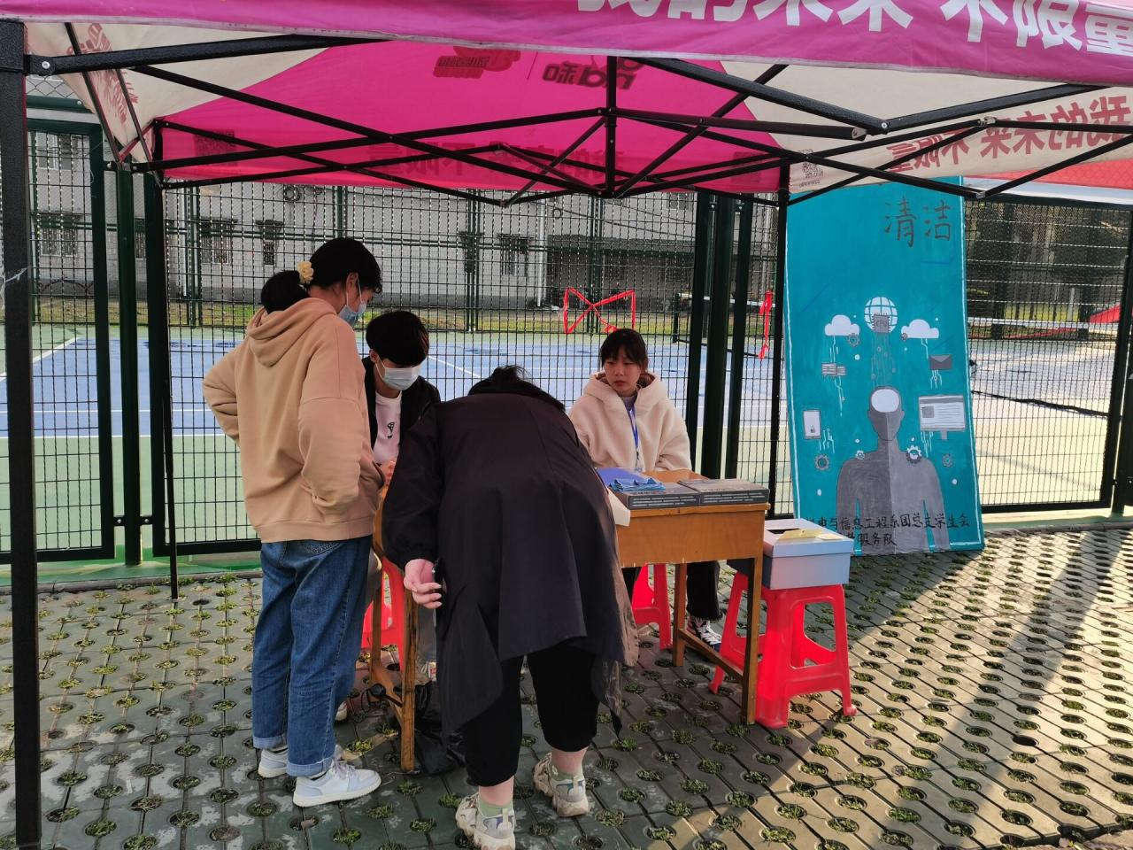 活动期间,志愿者们进行摆点,分批次轮流值班。虽逢小雨,但同学们参与活动的热情丝毫未减,纷纷将自己的数码产品带到现场进行保养,志愿者们在帮助他们清理的同时,也向他们介绍了清理方法和常用的清洁工具,并且为缓解同学们在学习和生活中的压力,活动现场还设置了解忧箱,帮助同学们倾诉烦恼,解放心灵。