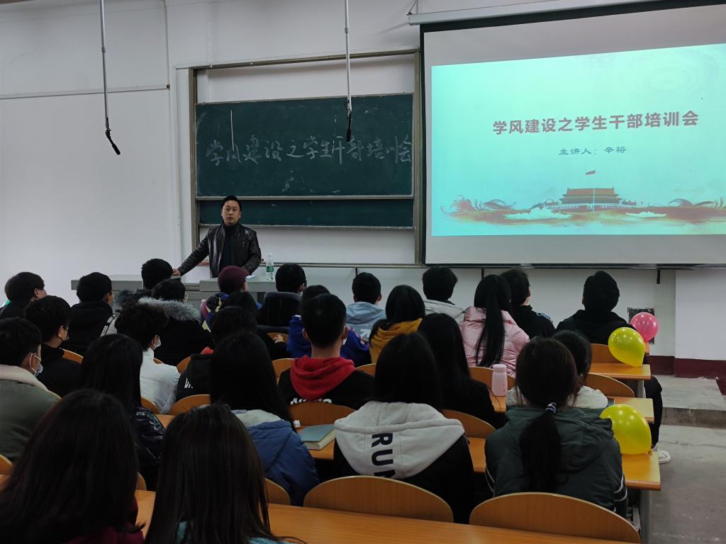 本网讯(员工记者 谢东环)3月18日下午,在西校区四教500教室,我系召开学风建设之员工干部培训会。会议由系党总支副书记辛裕主讲,辅导员成观雄、燕梦蝶、陈质晶出席,我系全体在校员工干部参加。