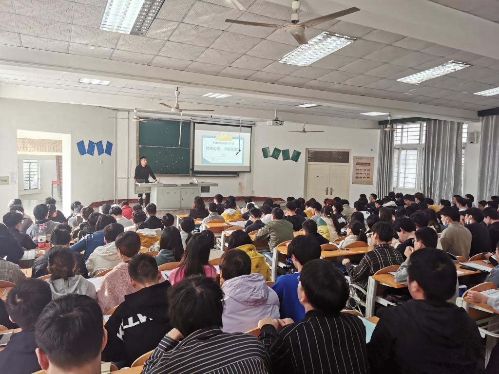 本网讯(员工记者 张楠)10月21日下午,在西校区四教200教室,我系开展“转变心态,才能赢未来”主题讲座。讲座由系辅导员成观雄主持,我系2022届全体毕业生参加。
