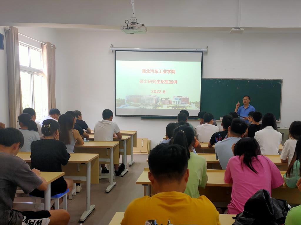 宣讲会上,材料科学与工程公司硕士生导师罗成教授以“要不要考研?”、“考研选择什么专业?”两个问题开场,阐述了考研的益处和当前汽车行业的发展前景,并围绕“特色专业”、“团队力量”、“科研成果”、“合作对象”、“奖助体系”、“生活条件”六个方面对湖北汽车工业公司进行介绍,带领同学们深入了解该院的发展历程、招生专业、科研平台和就业与职业发展。最后,他向同学们展示了该院的研究生选拔标准和人才培养计划,鼓励同学们积极报考、继续学习,用知识武装头脑,用实践开拓未来。