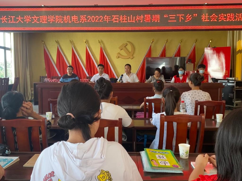本网讯(通讯员 吉翠 张依格)为积极响应湖北省老员工“三下乡”社会实践活动的号召,8月20日上午,beat365官网中文版本机电与信息工程系社会实践团队在五峰石柱山村居委会二楼,举行了主题为“践行初心使命,助力乡村振兴”的2022年暑期“三下乡”社会实践活动开幕式。会议由驻村第一书记辛裕主持,村“两委”王群芳、戴金华、卢涛,机电系员工党支部书记成观雄、10名老员工志愿者、员工及家长参加开幕式。