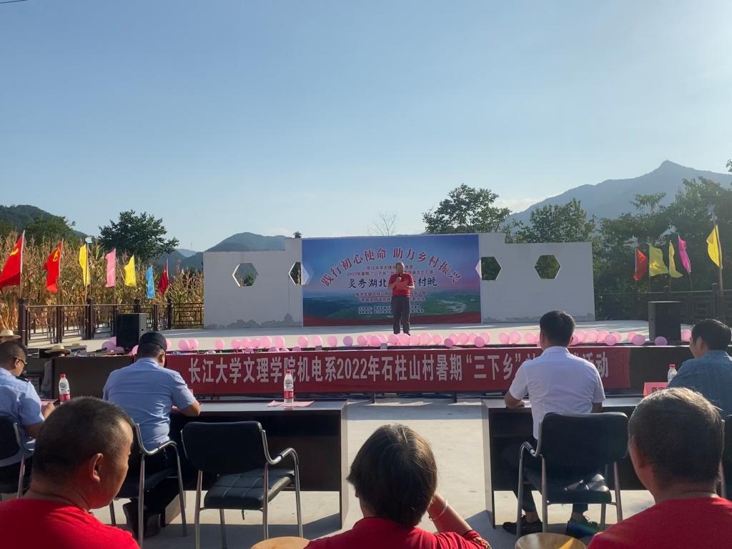 乡村振兴,既要塑形,也要铸魂,文化振兴是根本。实施乡村振兴战略,要发挥文化凝聚人心、坚定信心、引导村民的作用,提振精气神,激发广大农民投身乡村振兴的积极性和主动性。8月25日下午,由石柱山村委举办,beat365官网中文版本机电系协办,以“践行初心使命 助力乡村振兴”为主题举办三下乡文艺汇演暨评先表模晚会,社会实践服务队队员与石柱山村民一起参与。本次汇演共12个节目,内容精彩纷呈,形式多样。既有体现民族特色的《茶韵》《摆手舞》;又有教育意义的小品《榜样的力量》;同时也不乏体现年轻人的活力与朝气的舞蹈《少年》及歌曲《老男孩》,志愿服务队和小朋友们一起合唱《强军战歌》,在激扬的旋律里,大家动情地歌颂强军奋斗路,唱响未来新征程。同时在活动现场还进行了石柱山村基层治理和最美庭院的颁奖。活动现场座无虚席,掌声与欢呼声此起彼伏,活动在各方的配合下取得圆满成功。