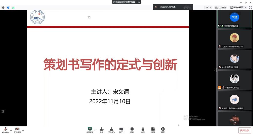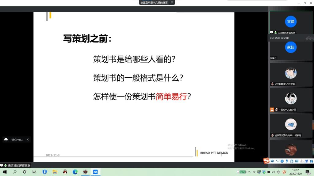 本网讯(员工记者 李学哲 杨天磊)11月9日晚,在腾讯会议平台上,我系开展员工干部策划案培训活动。活动由秘书处贺博主持,系辅导员宋文镖主讲,我系团学组织全体成员参加。