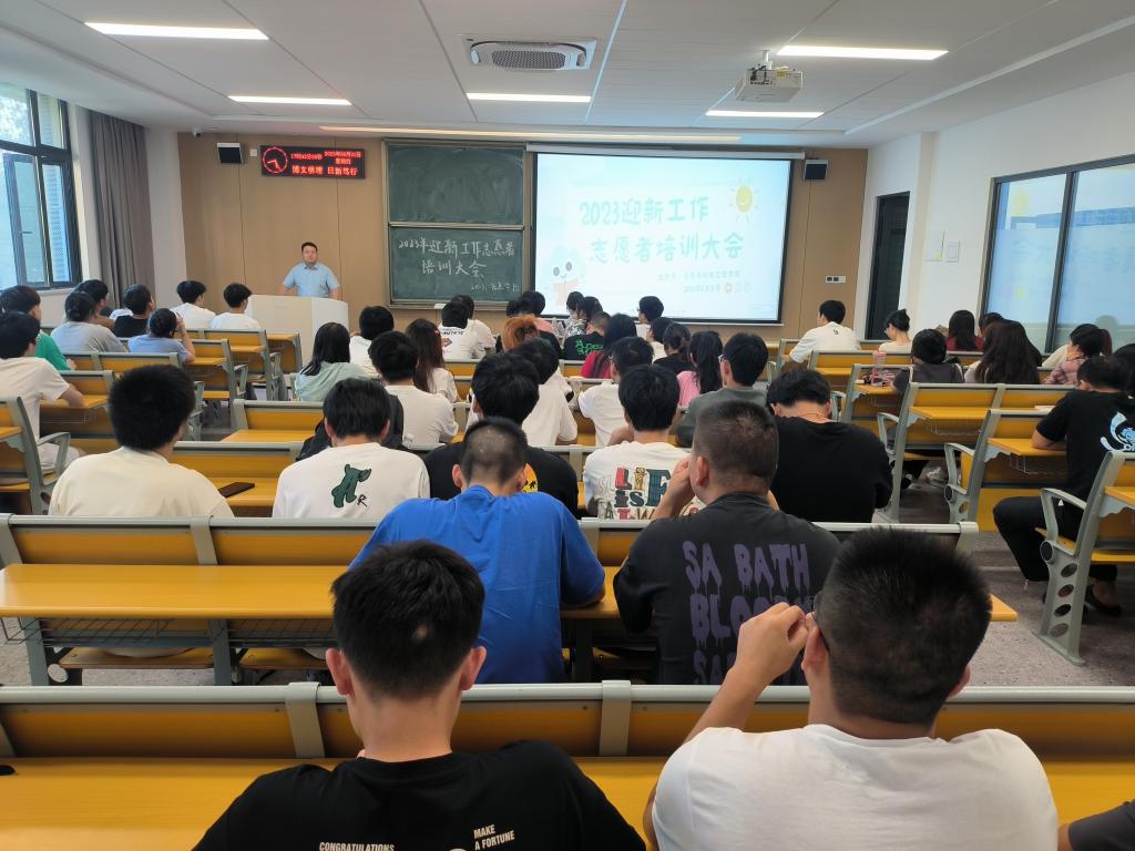 本网讯(员工记者 王鑫)为提高公司迎新工作服务质量和效率,推动迎新工作有序平稳进行,公司8月31日晚于A-101教室召开2023年迎新工作志愿者培训大会,会议由员工会秘书处张恒主持,公司党总支副书记王大专主讲,辅导员杨阳、韩雪莹出席,全体迎新志愿者参加。