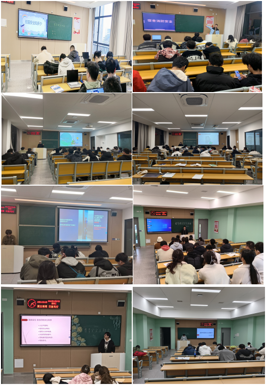 班会分为宿舍消防安全教育和电动车“违停违充”安全教育两个部分。班会上,主持人向同学们讲解了常见火灾种类及起火原因,并通过视频让同学们认识到电动车进楼充电的重大隐患,引起同学们对火灾危害性的重视,加强同学们的自我保护意识。
