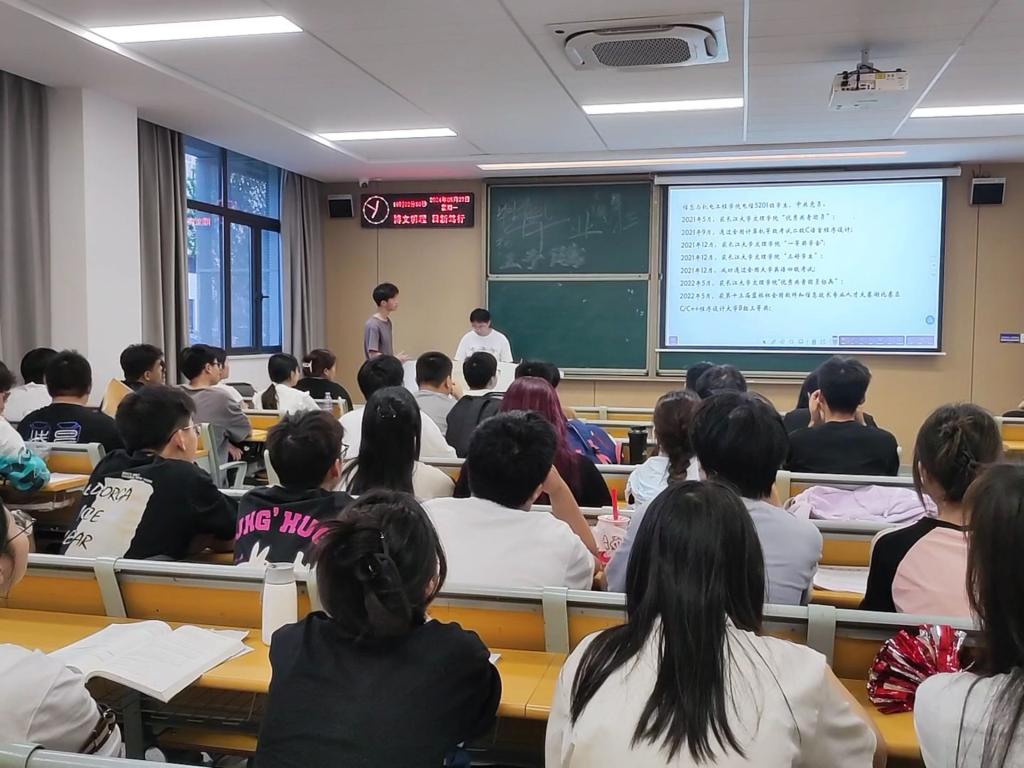 在交流会上,张钦浩同学围绕自己大学四年的专业学习、英语四六级备考和参与学科竞赛情况,寄语大一学弟学妹要“明确目标,脚踏实地走好当下的路”。张俊强同学结合自己参加校内外各项活动经历和备考期间的艰辛与感动,用“尽人事听天命”告诫大一员工积极进取,努力奋进。自由提问阶段,面对学弟学妹所提出的问题,两位同学都耐心给出了回答。