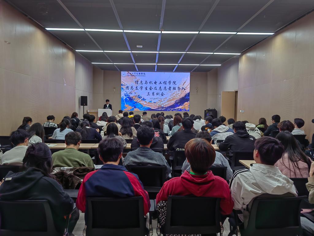 本网讯(通讯员 谢天禹 杨珺涵/文 吴祎/摄)3月27日,信息公司第二十届团总支员工会及志愿者服务队在图书馆103会议室召开三月工作例会,本次例会由院员工会综合办公室张泽玮主持,院全体团学组织干事参加会议。