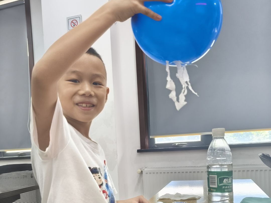 暑期托管班的科学魔法时间,志愿者张佳男变身为电荷探险家。课堂上,大家手持气球,轻轻在头发上摩擦几下,然后缓缓靠近碎纸屑,纸屑竟纷纷挣脱桌面的束缚,向着气球“飞”去。他向好奇提问的孩子们解释,并借此带领孩子们开启静电奥秘探索之旅。