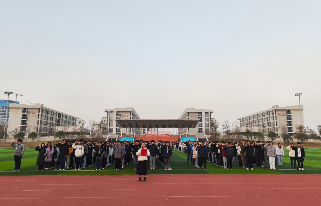 仪式最后,全体师生在赵秋丽同学的带领下庄严宣誓:“我以青春的名义宣誓:铭记一二·九历史,传承爱国精神;坚定理想信念,锤炼过硬本领;不负时代重托,不负人民期望;强国有我,勇毅前行!”铿锵誓言响彻操场,久久回荡。