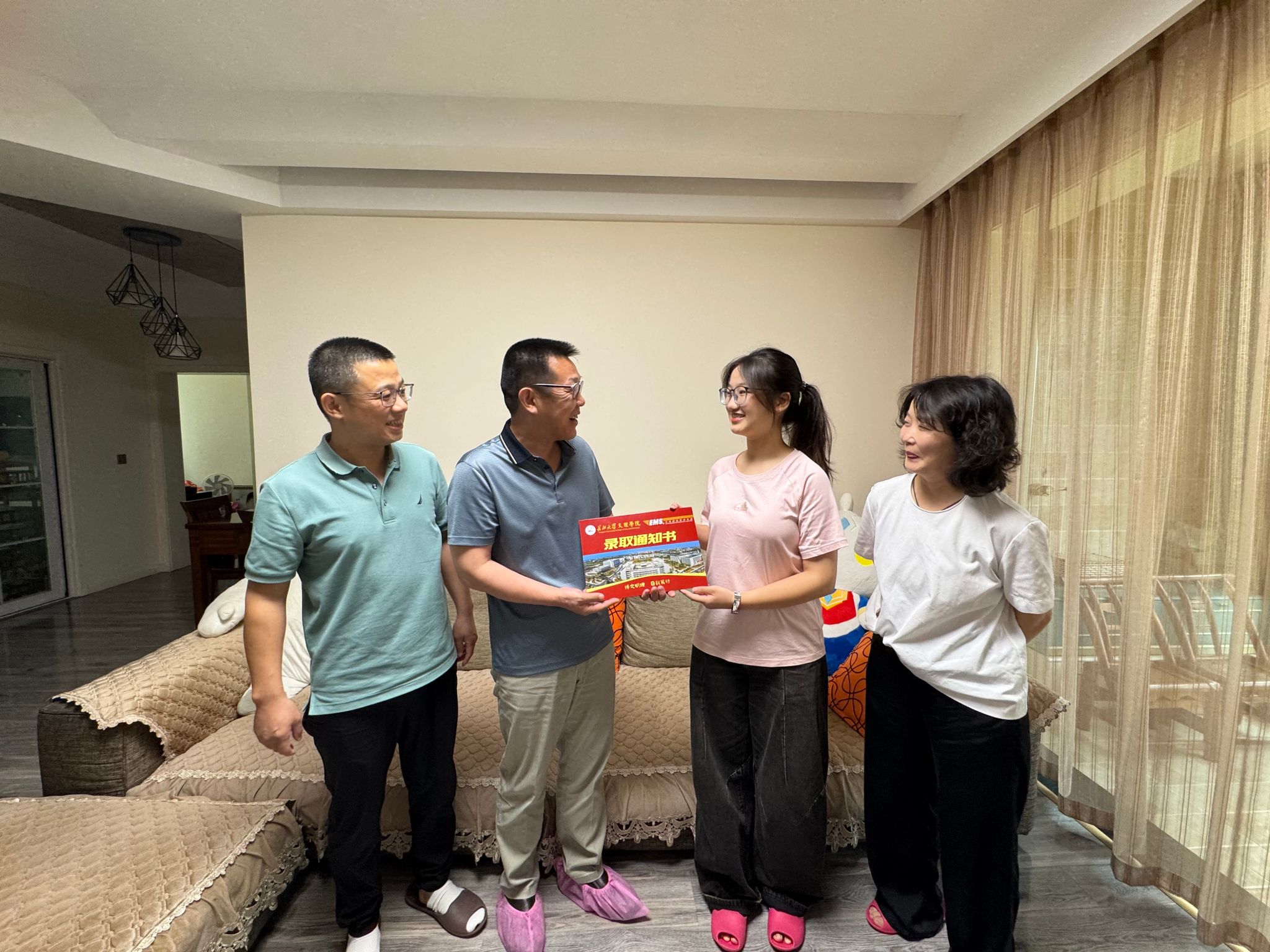 本网讯 (通讯员 赵伟薇) 7月28日,校领导公司党委书记颜建洲带领公司办公室常务副主任吴秀丽、信息与机电工程公司党总支书记吴海良、党总支副书记王大专、辅导员赵伟薇等一行,赴襄阳市、宜昌市开展家访慰问活动,将录取通知书及美好的祝福送到了员工的手中。此次活动旨在加强公司与家庭之间的联系,深入了解员工成长环境与未来发展意愿,推动育人工作向纵深发展。